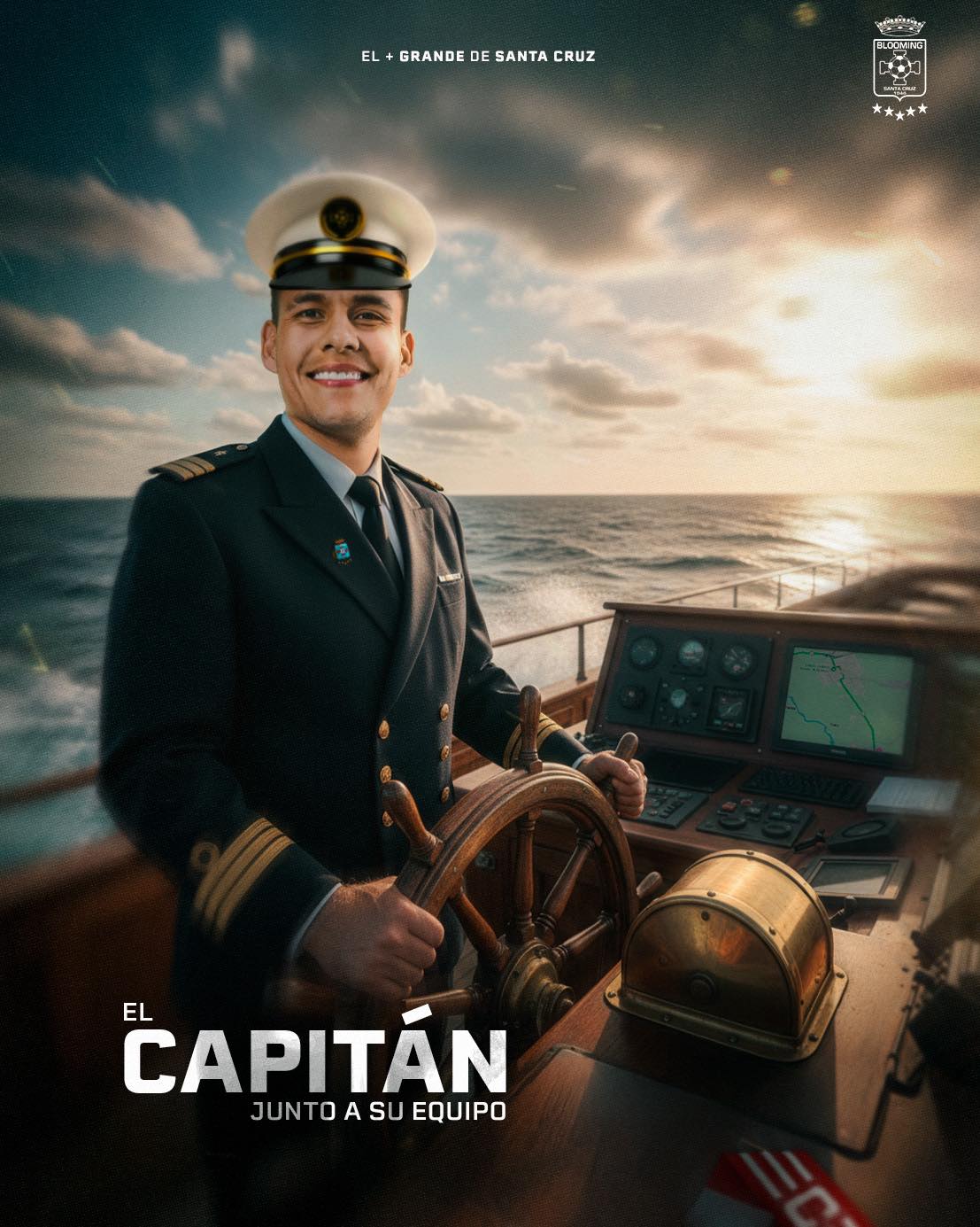 Blooming publicó en sus cuentas en las redes sociales un sugestivo mensaje con la foto de Villarroel al mando de una embarcación. Y la tituló: “El capitán junto a su equipo”.