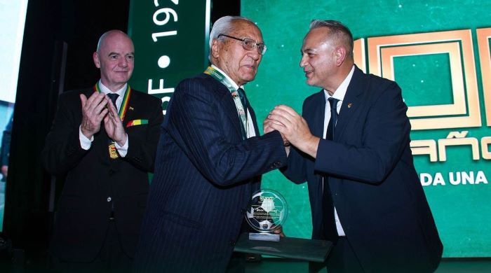 La FBF celebró su Centenario el lunes en una gala. El capitán de la selección de 1963 y algunos de sus compañeros recibieron la Medalla de Honor Víctor Agustín Ugarte.