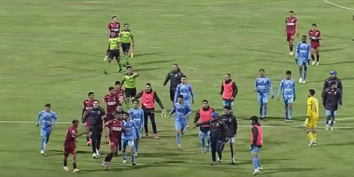 Cuando el árbitro Renán Castillo, permisivo en algunas jugadas y de mala actuación, dio por finalizado el encuentro luego de una larga adición, futbolistas del equipo local, con los ánimos exaltados, no lograron asimilar la caída y fueron a la pelea, provocando la respuesta de sus rivales.