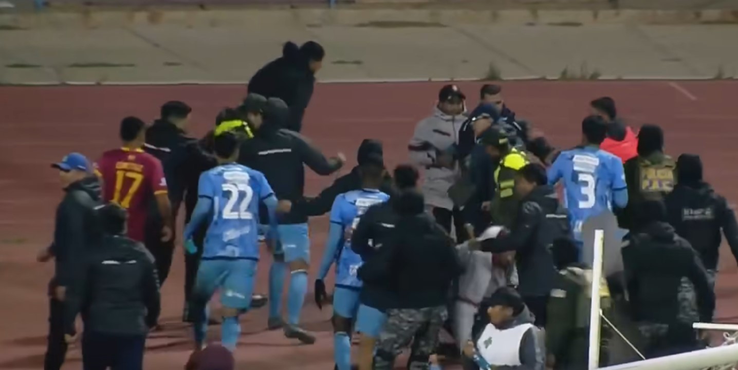 Hubo jugadores que se trenzaron a golpes, asistentes que también se agredieron verbal y físicamente y hasta el entrenador de Real Oruro Marcelo Robledo se vio involucrado en ataques e intercambio de golpes con miembros del cuerpo técnico de Blooming.