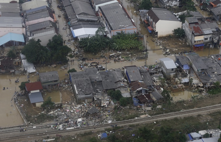 Numerosas localidades de Tailandia siguen inundadas, pese a que el agua ha comenzado a retroceder en algunas zonas. Solo en la provincia de Songkhla -declarada en estado de emergencia- 110 personas han perdido la vida en los últimos cinco días.