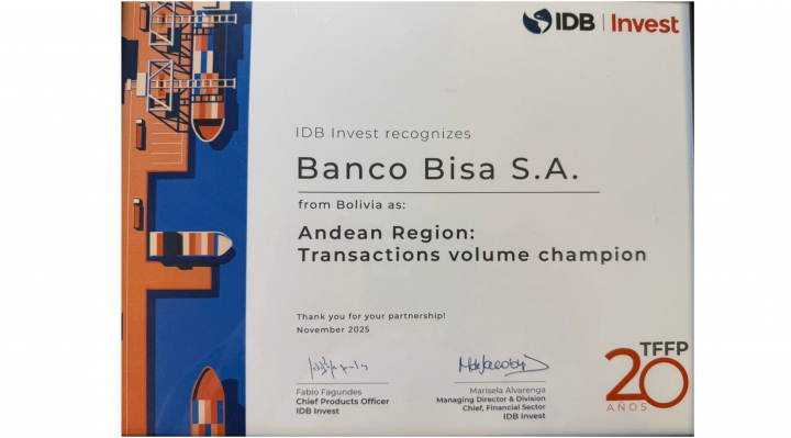 El logro —otorgado en una región que incluye a mercados robustos como Colombia, Perú y Ecuador— posiciona al BISA como un actor clave para el impulso del comercio exterior boliviano y refleja su capacidad para competir en estándares internacionales.