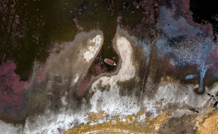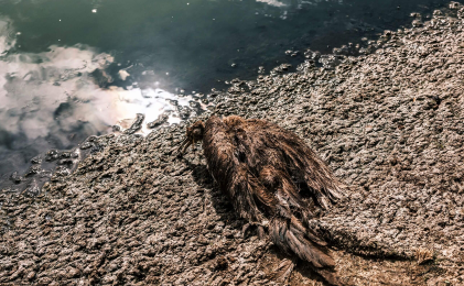 Un ave moribunda en una orilla del lago. Foto: Musuk Noite/ Bertha Foundation