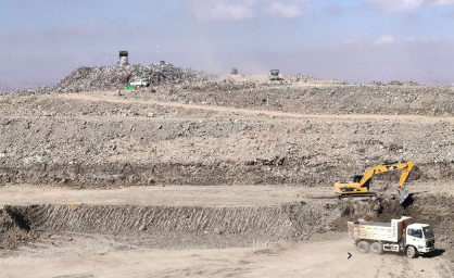 Maquinaria pesada opera en la planta de tratamientos de residuos sólidos de El Alto. Foto: GAMEA