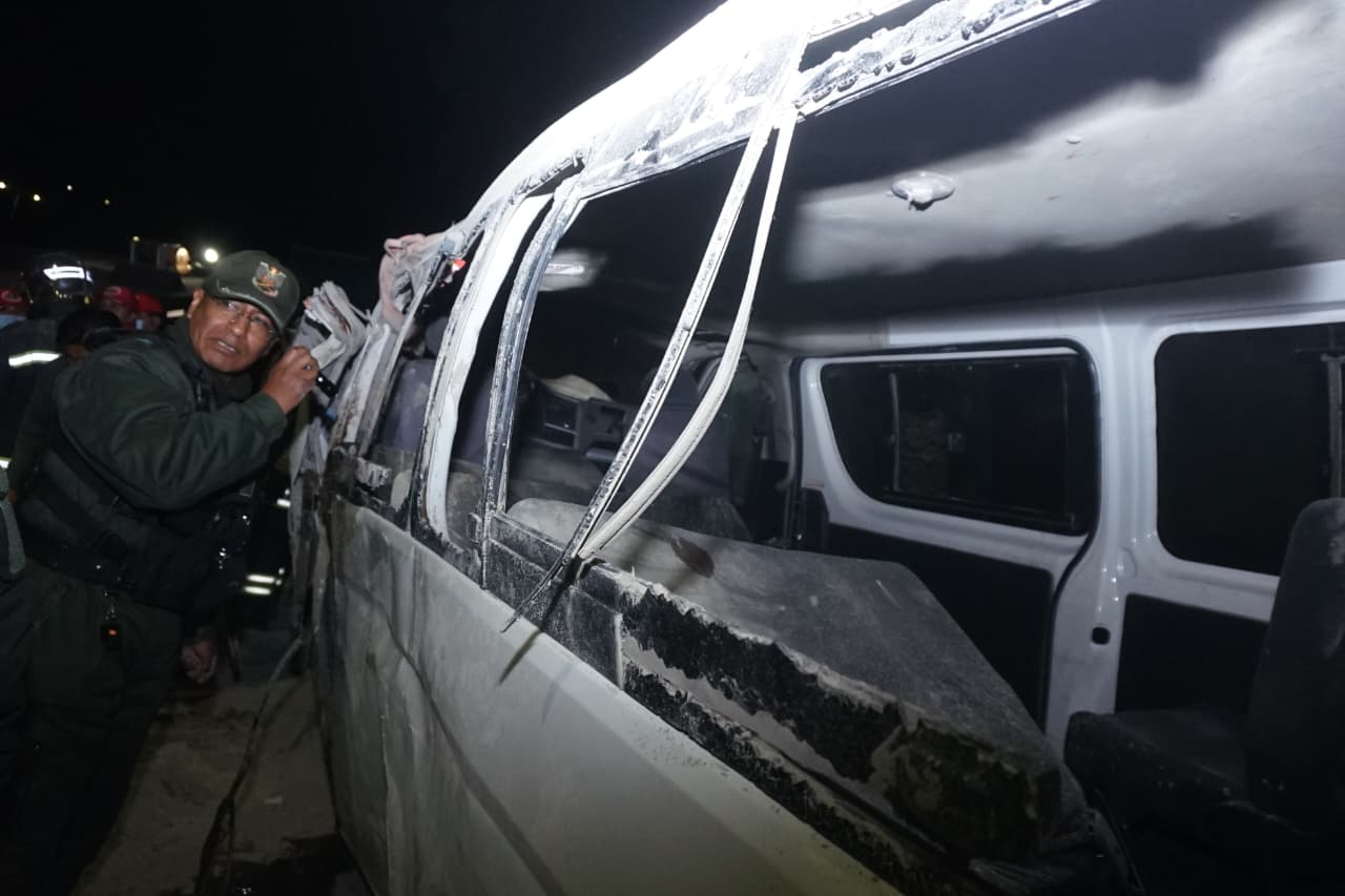 “Nos hemos constituido a la autopista donde se ha registrado un hecho de tránsito, donde un camión que bajaba lleno de cemento, perdió el control e impactó contra los separadores del carril e invade el carril de subida y colisiona contra un minibús que estaba lleno de pasajeros", explicó a BTV.