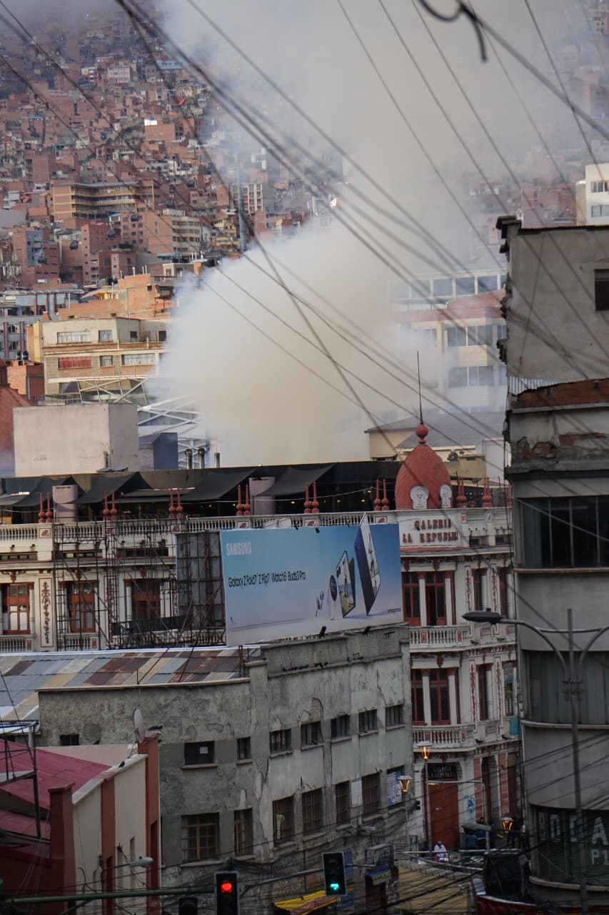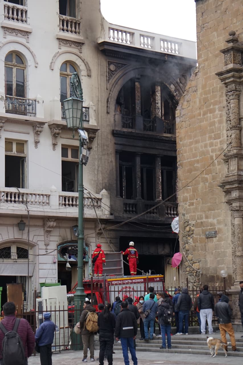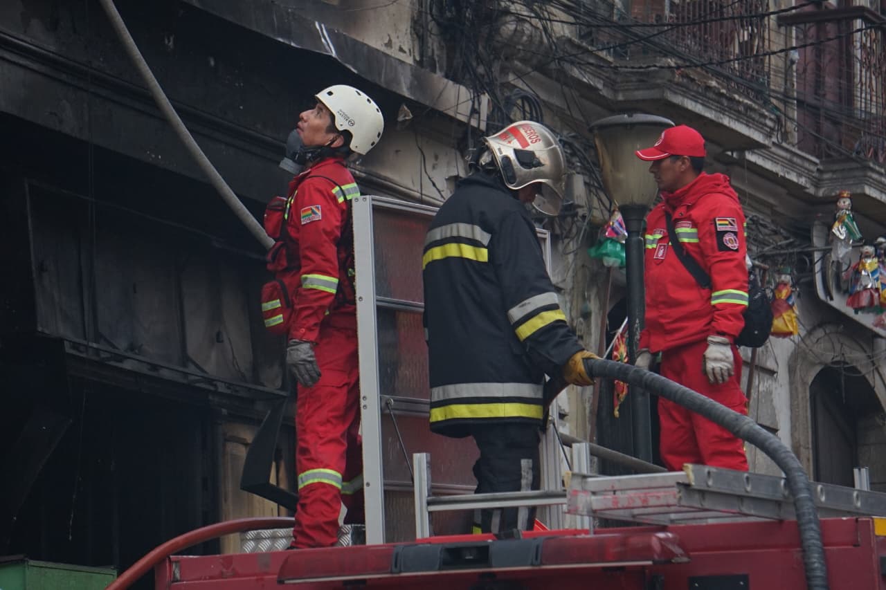 En el lugar se encuentran bomberos y personal del Gobierno Autónomo Municipal de La Paz. Las tareas se centran en apagar el incendio, pero también evitar que otros inmuebles sean afectados.