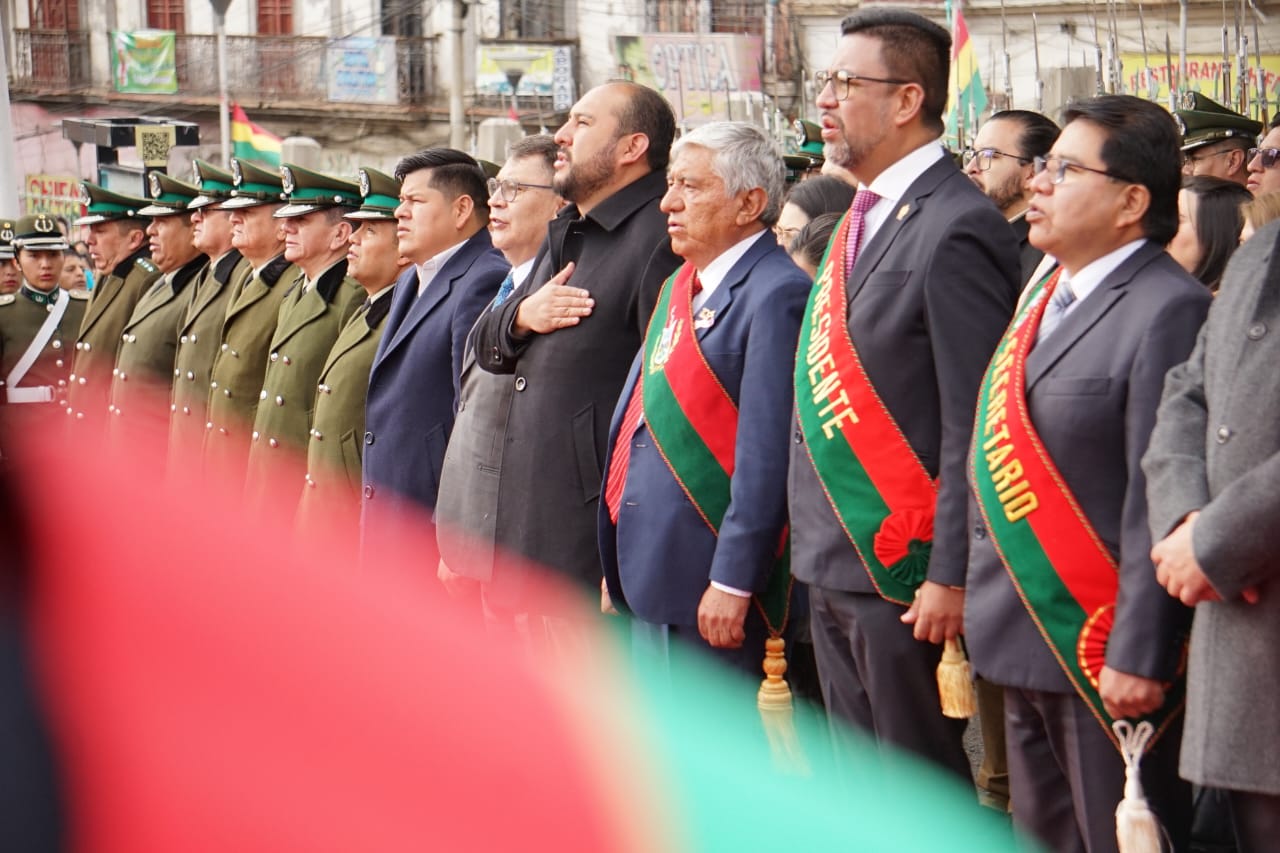 “La Paz nació como un lugar para el encuentro, como un lugar para el diálogo y también como un faro de esperanza. Ese espíritu que nos heredaron quienes soñaron en nuestra ciudad sigue vivo y cada vez que vemos flamear nuestra bandera, nos recuerda que el destino de esta ciudad y de Bolivia no está en la confrontación”, dijo el alcalde.