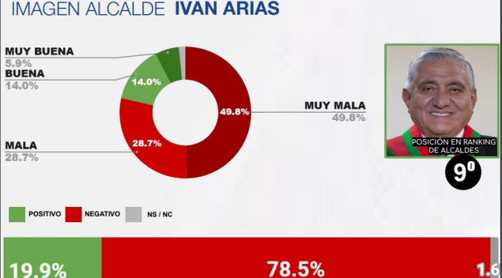 Sin embargo, el alcalde paceño tiene un índice de desaprobación de 78,5% por encima de Luis Bello que tiene un 62,2% y Melendez con 60,7% de rechazo.