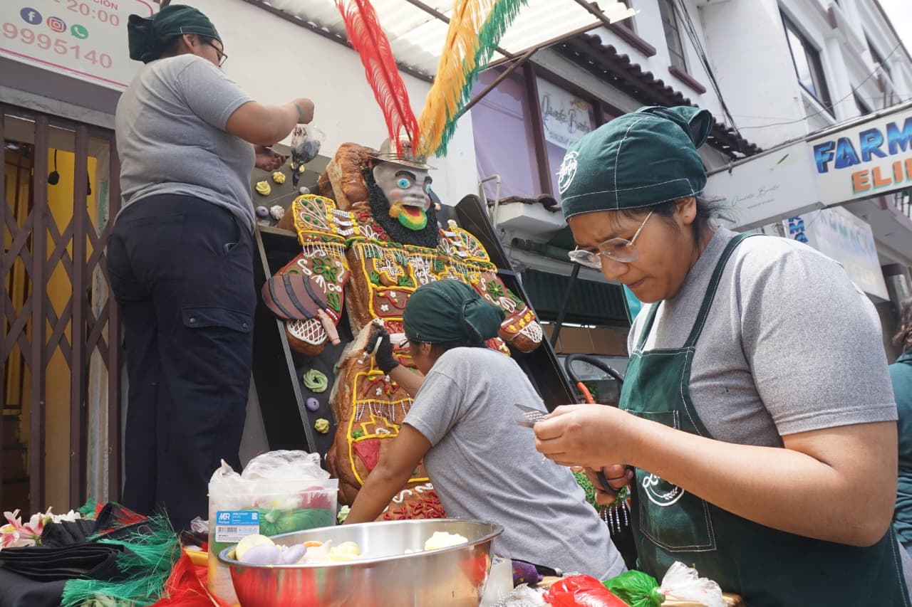 Los estudiantes de gastronomía del Instituto Técnico Nueva Bolivia contribuyeron al altar con algunos platos que se comen habitualmente en esta festividad, como el ají de garbanzos.