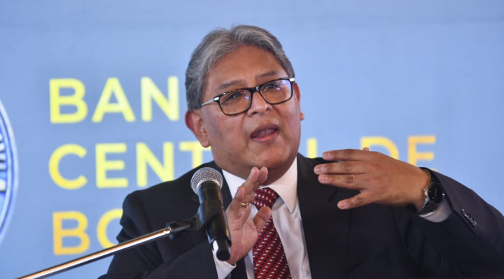 El presidente del BCB, Edwin Rojas, en contacto con los medios, este viernes. Foto: APG