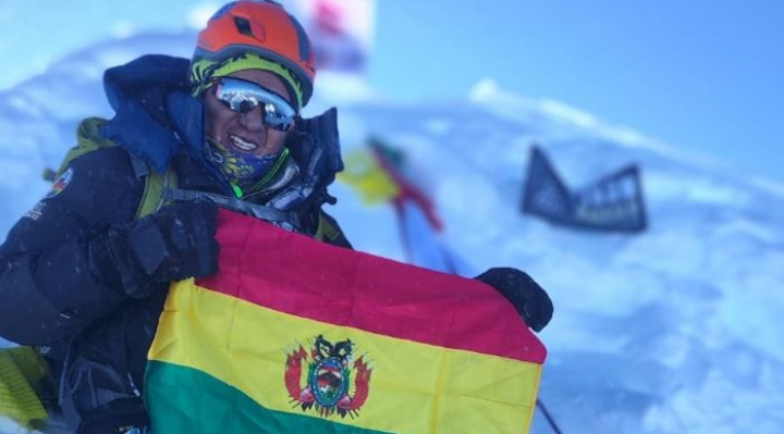 El alpinista boliviano llegó a los 8.163 metros de uno de los 14 nevados más altos del mundo, situado en Nepal. “Estamos acá, con la bandera, muy cansados, pero muy contentos”, dijo en un video grabado en la cima.