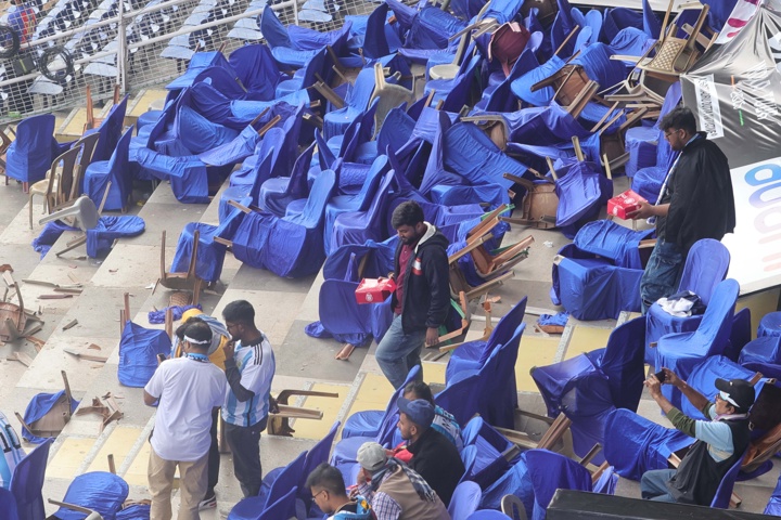 El estallido de violencia en las calles fue la culminación de una jornada caótica que comenzó en el interior del Salt Lake Stadium, donde miles de personas que habían pagado entradas de hasta 12.000 rupias (más de 100 dólares) vieron frustradas sus expectativas cuando el jugador fue evacuado precipitadamente.