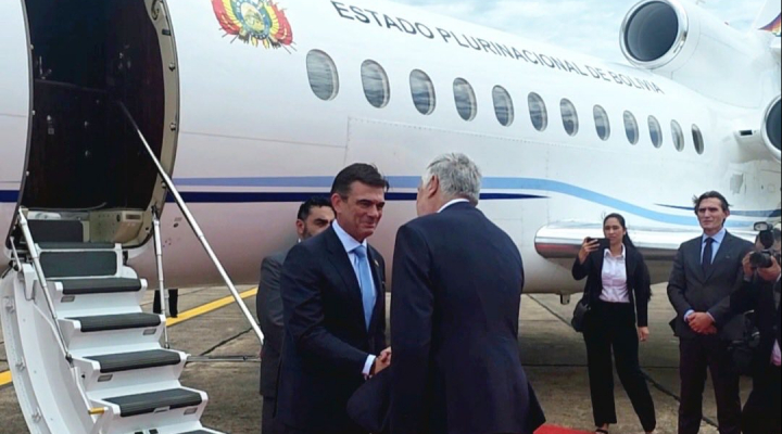 La Oficina del Presidente difundió imágenes, en su cuenta de Facebook, del arribo del mandatario boliviano a la capital paraguaya.
