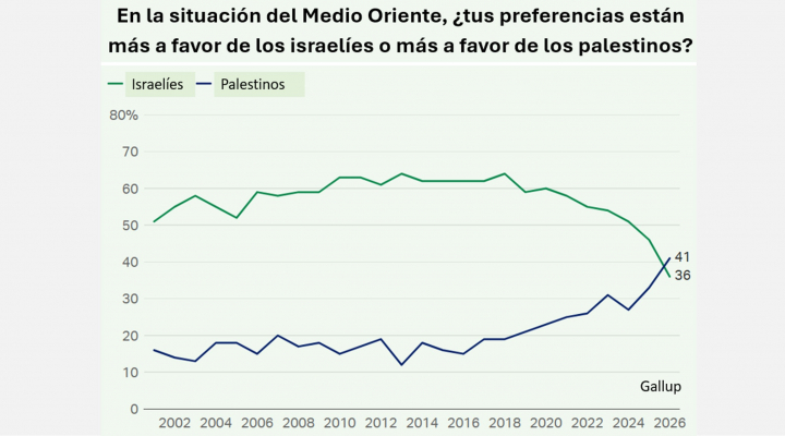 El dato contrasta además con la clara ventaja que tenían los israelíes hace apenas un año (46 % frente a 33 %) y con márgenes mucho más amplios durante los 24 años anteriores.