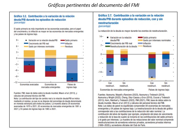 Entre sus conclusiones, afirma que, “en términos de enseñanzas en materia de políticas, los países que buscan la reducción moderada y gradual de los coeficientes de endeudamiento deben aplicar consolidaciones fiscales (reducción del déficit) bien concebidas, en particular cuando el ritmo de crecimiento de las economías es mayor y cuando las condiciones son favorables. Los efectos de los ajustes fiscales se ven a menudo reforzados si se acompañan de las reformas estructurales que promueven el crecimiento y de marcos institucionales sólidos (énfasis míos).”