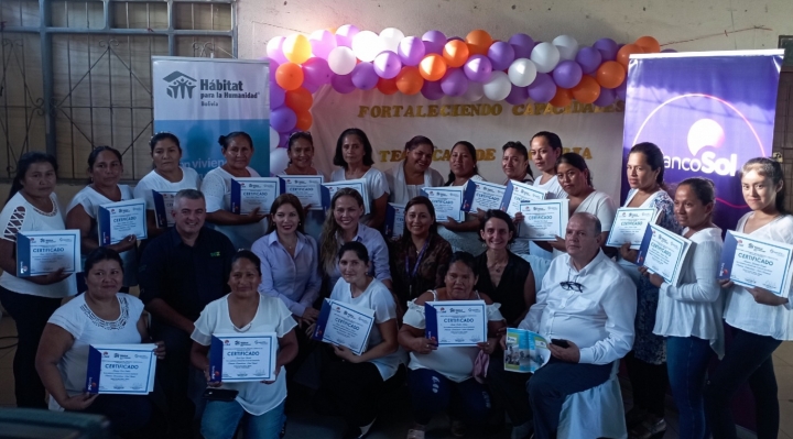 “Estamos orgullosos de los resultados alcanzados con este proyecto, brindando oportunidades de empleabilidad y de habitabilidad de mujeres en situación de vulnerabilidad mediante la formación técnica certificada, con el fin de que puedan generar sus ingresos y contribuir así a mejorar su calidad de vida y la de sus familias”, destaca la gerente general adjunta de BancoSol, Verónica Gavilanes.