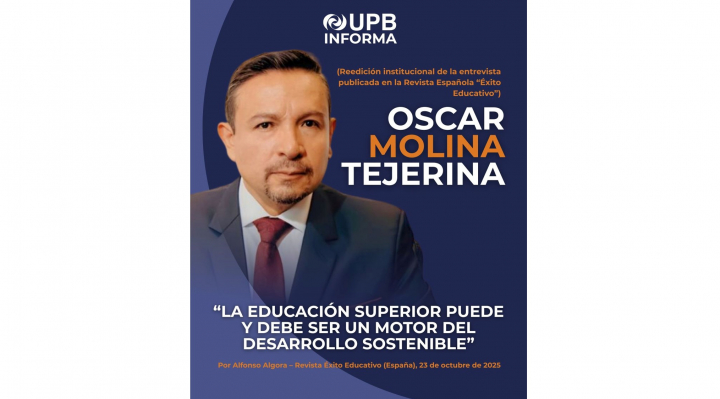 La educación superior es mucho más que un espacio de formación profesional: es un eje de transformación social. Así lo afirma Óscar Molina Tejerina, rector de la Universidad Privada Boliviana (UPB), en una entrevista concedida al consultor y académico español Alfonso Algora para la revista Éxito Educativo. Desde una mirada reflexiva y propositiva, Molina Tejerina explica cómo la UPB ha construido, a lo largo de tres décadas, un modelo universitario basado en la excelencia, la innovación y el compromiso con Bolivia.