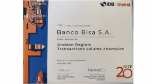 Banco BISA recibe un reconocimiento regional de BID Invest por su liderazgo en comercio exterior