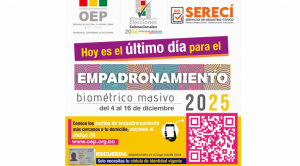 El empadronamiento masivo para las Elecciones Subnacionales 2026 concluye hoy martes 16 de diciembre
