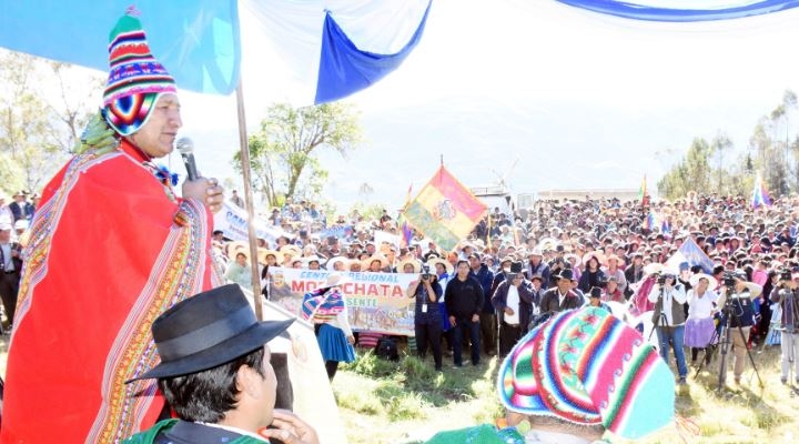 El presidente Evo Morales convirtió el martes un acto de gestión gubernamental en una campaña electoral, pues comprometió a la población de Morochata (Cochabamba) atender el próximo año en todo lo que pidan si garantizan con el cien por cien de los votos a su candidatura inconstitucional en las elecciones generales del 20 de octubre.