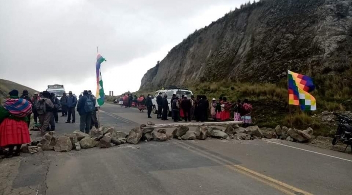 En La Paz, la Federación de Jóvenes de las 20 provincias del departamento instaló un punto de bloqueo en la carretera La Paz – Oruro, justo en el sector de la Apacheta, donde echaron piedras para impedir el paso de los buses.