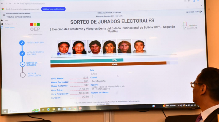 A nivel nacional se eligieron 204 mil jurados y para el voto en el exterior, 7.364. En total, hay 35.253 mesas. Este fin de semana los elegidos serán notificados y el domingo se publicara la lista, en medios de comunicación y en la página del Órgano Electoral Plurinacional.