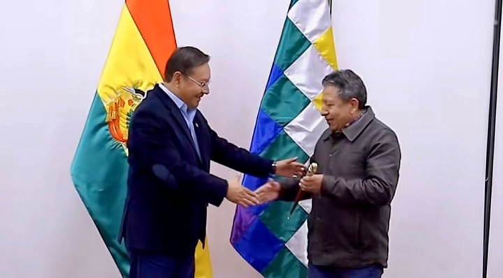 El presidente del Estado, Luis Arce, entregó este martes el bastón de mando al vicepresidente, David Choquehuanca, antes de su viaje a Nueva York para asistir a la 80ª sesión de la Asamblea General de las Naciones Unidas.