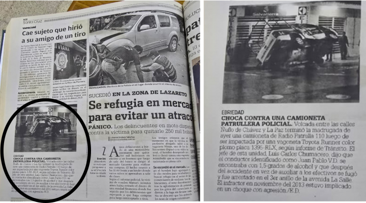 Al día siguiente, ese diario publicó la noticia en su edición impresa (ver foto) y añadió que la misma persona fue protagonista de un accidente con agresión en 2013, cuando Velasco tenía 26.