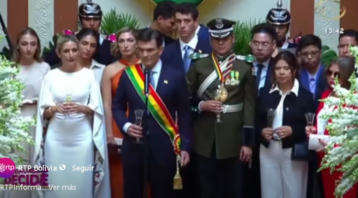 lAcompañado por el vicepresidente Edmand Lara, el presidente Rodrigo Paz brindó este sábado por Dios, los héroes, la familia y la patria, tras asumir el mando en la Asamblea Legislativa Plurinacional.