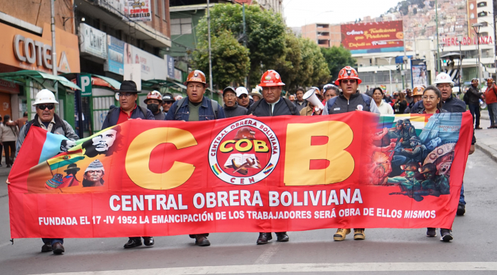 Este jueves, la Central Obrera Boliviana (COB) continuó con su movilización en rechazo al Decreto Supremo 5503, realizando una marcha por el centro de la ciudad durante el feriado de Navidad. Esta jornada marca el cuarto día consecutivo de movilización del sector.