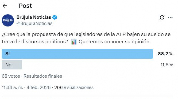 En Facebook, el 61 % de los participantes consideró que la iniciativa responde a un planteamiento político, mientras que el 39 % opinó que se trata de una propuesta seria. En la red social X, antes Twitter, esta percepción es aún más notoria: el 88,2 % afirmó que la rebaja salarial tiene un carácter discursivo, frente a un 11,8 % que la ve viable.