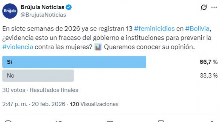 En Facebook, el 70 % respondió que las cifras muestran un fracaso del gobierno e instituciones, frente a un 30 % que opinó lo contrario. En X, el 66,7 % coincidió en que los datos reflejan una deficiencia en la lucha contra la violencia hacia las mujeres, mientras que el 33,3 % señaló que no.