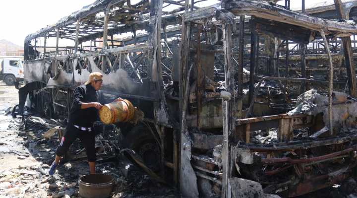 “Son cinco buses perdidos prácticamente en su totalidad que se han quemado completamente, pero tenemos que evaluar algún otro daño que sea proporcional en el inmueble u otros cercanos”, informó el director nacional de Bomberos Pavel Tovar.