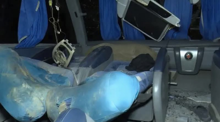 El bus salió a las 21:00 de la terminal Bimodal de Santa Cruz y cerca de las 22:30 una roca de gran tamaño se desprendió de un cerro y golpeó al vehículo.