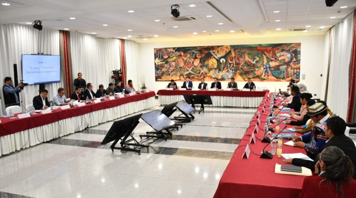 La sesión extraordinaria del Consejo Nacional de Autonomías se instaló esta mañana en la Casa Grande del Pueblo, en La Paz, encabezada por el presidente, Luis Arce.