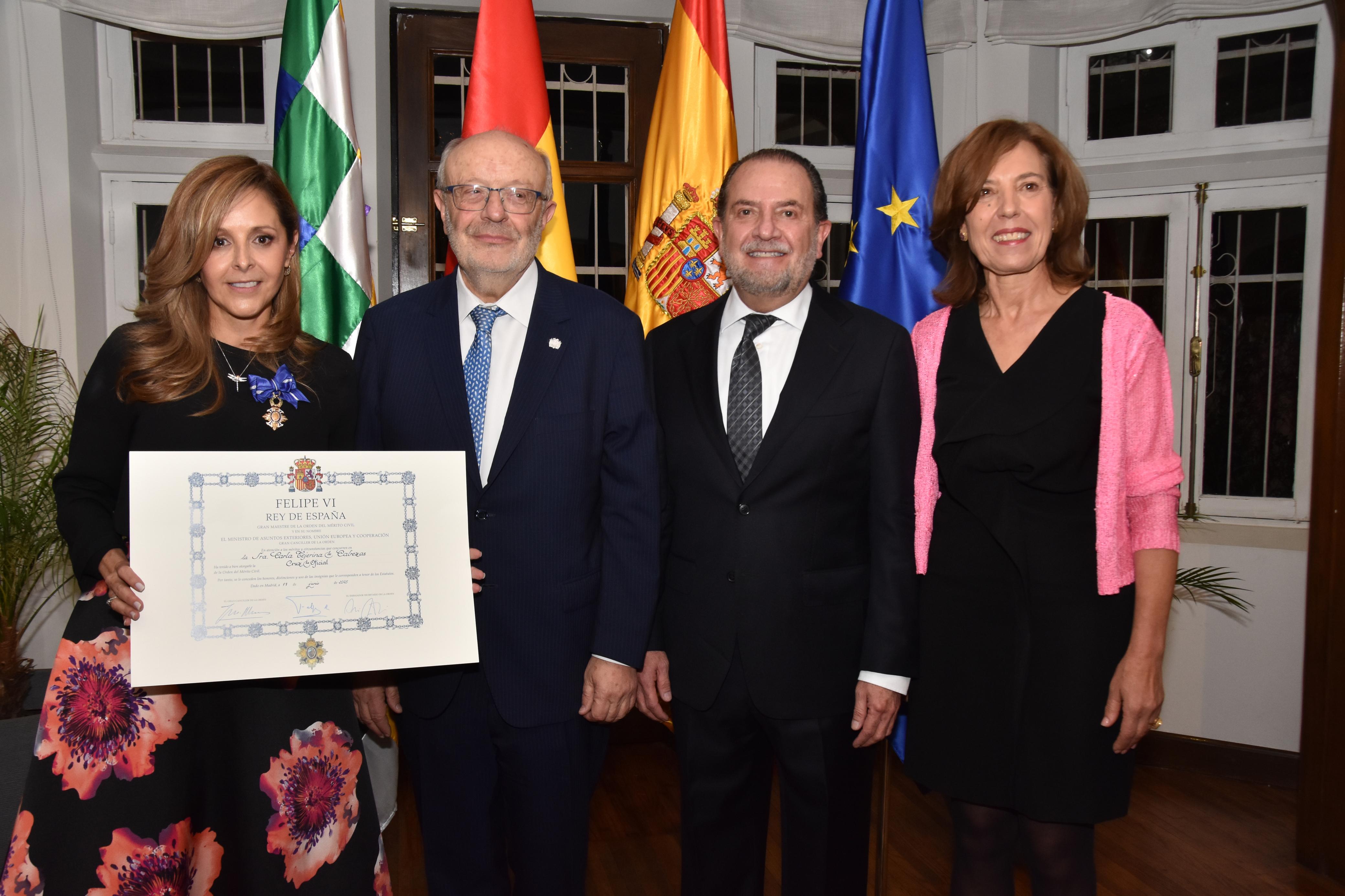 La ceremonia contó con la presencia de diplomáticos, periodistas, empresarios y representantes de instituciones culturales. El acto finalizó con un brindis en honor a la homenajeada y a los vínculos históricos que unen a España y Bolivia.