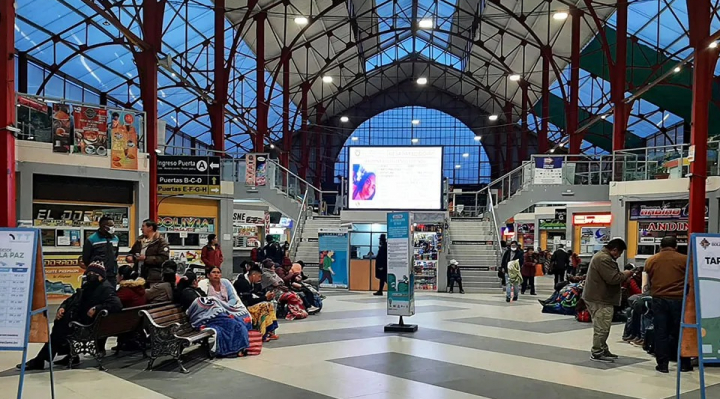 Las terminales de buses de La Paz y El Alto suspendieron de forma temporal las salidas interdepartamentales debido a bloqueos en las principales carreteras del eje central del país.