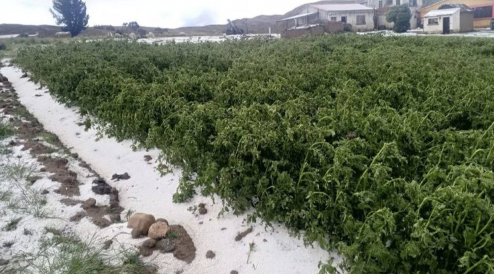 Una intensa granizada cayó el domingo en la comunidad de Cota Cota Alta y provocó daños en cultivos y animales de los comunarios del municipio de Huarina, informó su alcalde, Wilson Mamani.