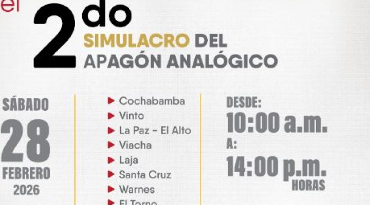 En declaraciones a Bolivia TV, la autoridad explicó que el país se encuentra “en la recta final” del proceso y anunció que este sábado se desarrollará un simulacro como parte de las acciones de preparación. La prueba está programada para las ciudades del eje troncal. Durante cuatro horas, entre las 10.00 y las 14.00, los canales de televisión interrumpirán su señal analógica habitual. En su lugar, se difundirá un mensaje informativo indicando que se trata de un simulacro y orientando a la población sobre cómo sintonizar la señal digital, especificando el número de canal correspondiente en los casos en que ya esté habilitado.
